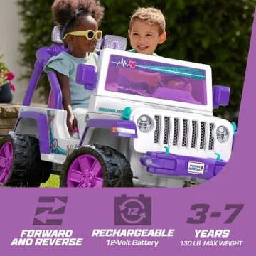 Show moreIntroducing the ultimate adventure companion for young explorers: the Power Wheels Happy Hound Vet Rescue Jeep Wrangler! This vibrant and engaging battery-powered ride-on toy is designed to whisk your children away on exciting journeys, whether through the backyard or around the neighborhood. Featuring an enchanting dog theme, this Jeep captures children's imaginations and encourages them to engage in role-playing activities while they care for their stuffed animals with the included complete pretend vet medical kit. Your kids will love this immersive experience as they ride in style!