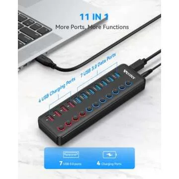 When stacked against other USB hubs on the market, Wenter's Powered USB 3.0 Hub shines with its **combination of high-speed data transfer and smart charging capabilities**. Many competing products offer data transfer or charging, but few can match the efficiency of this **11-in-1 solution**. With distinctive features such as individual switches and the powerful 12V/3A adapter, Wenter’s hub not only keeps your devices connected but also charges them swiftly, outperforming competitors that merely replicate basic functionalities.