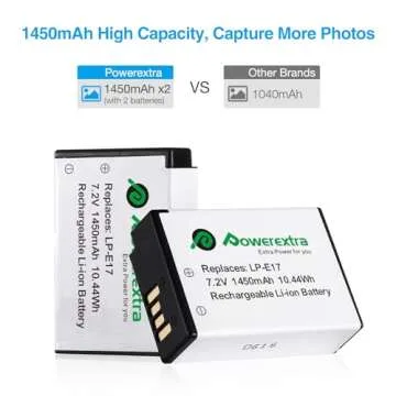 Powerextra LP-E17 Batteries and USB Charger Compatible with Canon LP-E17 Battery and Canon RP Rebel SL2 SL3 T6i T6s T7i M3 M5 M6 200D 77D 750D 760D 800D 8000D KISS X8i Camera