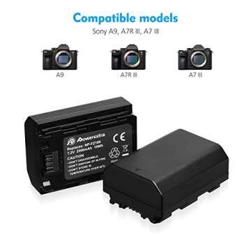 Powerextra Replacement Sony NP-FZ100 Battery and Dual USB Charger for Sony ZV-E1, FX3, FX30, A7C, Alpha A7 III, A7R III, A9, Alpha 9, A7R3, a6600, a7R IV, Alpha a9 II, Alpha 9R, A9R, Alpha 9S Camera