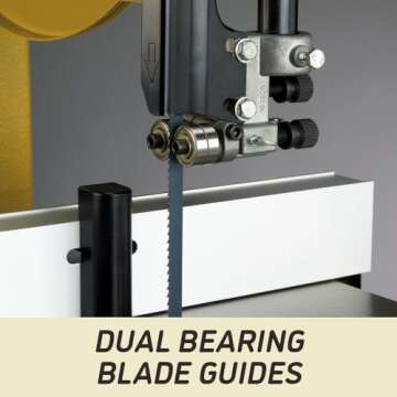 Yes, it features a micro-adjustable dual bearing blade guide system for precise blade control.