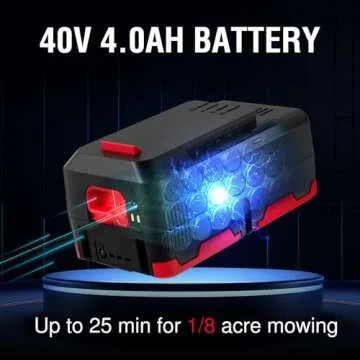 The PowerSmart 40V 4.0Ah battery can last up to 25 minutes, allowing you to mow lawns of up to 1/8 acre on a single charge.