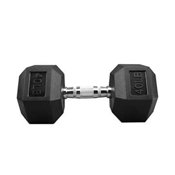 POWERT Rubber Encased Hex Dumbbell - 40 lbs for Strength Training