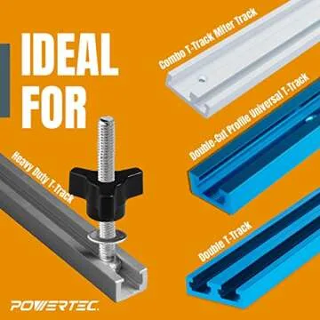POWERTEC 71068 T Track Knob Kit with 1/4-20 by 1-1/2" Hex Bolts and Washers, Set of 10 T Track Bolts, T Track Accessories for Woodworking Jigs and Fixtures
