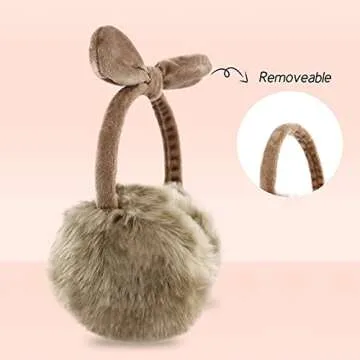 POXIMI Women Winter Earmuffs Girl Ski Adjustable Ear Covers for Kid Cute Bow Ear Warmer Outdoor Earmuff Fleece Lining (B-Khaki, ONE SIZE)