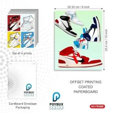 PoyBux Design - AJ Wall Glossy Paper Art Poster Prints, Set of 4 (8''x10'') UNFRAMED, AJ Room Decor, Gym Shoes Art Sports Themed Wall Art For Boys Room Wall Decor,Gift for Boys,