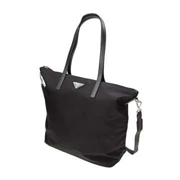 Show moreIntroducing the Prada Women's Black Nylon Shopping Tote 1BG189, an exquisite blend of elegance and functionality. Made in Italy from durable black Tessuto nylon, this tote is designed to accompany you on all your adventures. Showcasing refined silver-tone hardware, it embodies a chic aesthetic that complements any outfit, whether you’re heading to work or enjoying a weekend getaway. The secure top zip closure ensures your belongings are safe, while the spacious interior is perfect for stowing away everything you need throughout the day.