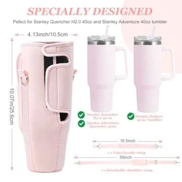 PRAGATISM Water Bottle Holder with Strap Pouch and Handle fits for Stanley 40/30 oz Tumbler, Water Bottle Carrier Bag with 4.9FT Strap, Bottle Pouch for Stanley Cup Accessories