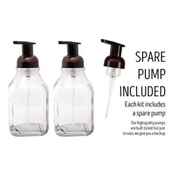 Prairie Essentials Foaming Soap Dispenser Pump - 16 oz Glass Bottle Set