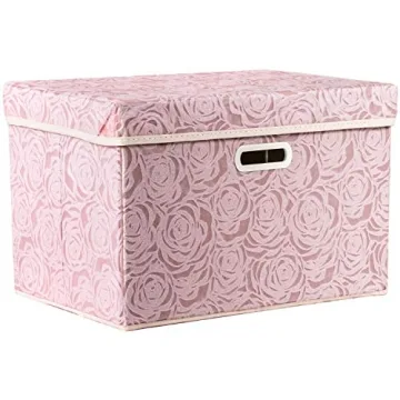 PRANDOM Larger Collapsible Storage Bin with Lid - Decorative Organizer in Pink 17.7x11.8x11.8 Inch