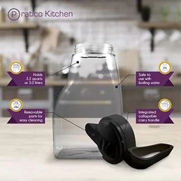 Pratico Kitchen LargePour Water, Juice, and Beverage Airtight Pitcher, Made in Japan, 3.2 qt, 102 oz, Black