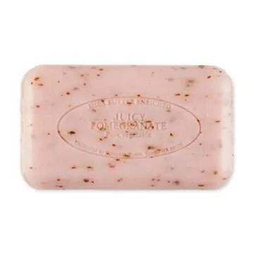 Show more Introducing the exquisite JUICY POMEGRANATE SCENT soap by Pre de Provence, a luxurious bath experience awaits you! Each bar is crafted from the finest ingredients, bringing a fresh, exotic, and fruity aroma to your daily routine. This soap isn't just about fragrance; it features an exfoliant that thoroughly cleanses your skin by removing dead skin cells, calluses, and acne, significantly improving skin tone and blood circulation.