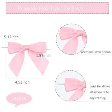 Pre-Tied Pink Bow Decor 4.5 inch Premade Pink Twist Tie Bows for Gift Wrapping,Pink Satin Ribbon Bows for Crafts,Pink Bow for Treat Bags Party Favors Wedding Decorations