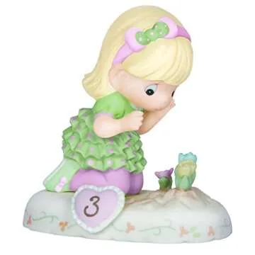 Precious Moments, Growing In Grace, Age 3, Bisque Porcelain Figurine, Blonde Girl, 142012