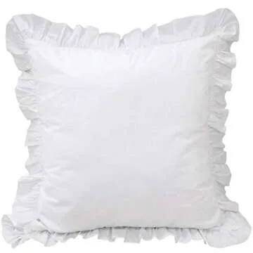 Precious Star Linen White Edge Ruffle European 28x28 Inch Pillow Shams Long-Staple Egyptian Cotton Hotel Class Set of 2 Decorative Euro Square Pillow Cover, Envelope Closure Soft & Cozy