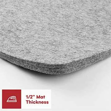 Show more Introducing the Precision Quilting Tools 17" x 24" Wool Ironing Mat, crafted to elevate your quilting and sewing experience. Made from 100% New Zealand Felted Wool, this ironing pad is cherished by quilters for its superior quality and performance. The dense weave of long wool strands guarantees that the mat remains taut and resilient, preventing any sagging or stretching. Coupled with its ability to retain heat, this mat allows for efficient ironing by effectively steaming and pressing fabrics from both sides simultaneously.