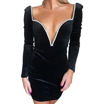 Elegant Velvet Bodycon Dress with Crystal Embellishments for Women