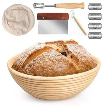 Premier Chef Bread Banneton Proofing Basket for Sourdough, Includes Linen Liner, Metal Dough Scraper, Scoring Lame, Extra Blades, Rising Dough Baking Bowl for Artisan Bread Making Starter