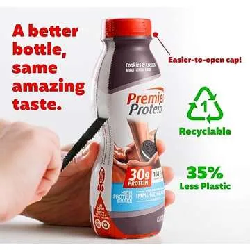 Show more The Premier Protein Shake is a revolutionary protein beverage, designed to fuel your day with delicious flavor and essential nutrients. This ready-to-drink shake boasts a mouthwatering chocolate cookie flavor that has won the prestigious American Masters of Taste Gold Medal for its superior taste. Each serving provides a remarkable 30g of protein, making it an ideal mid-day snack or post-workout treat to help curb hunger and support recovery. Packed with 24 vitamins and minerals, including antioxidants like Vitamins C and E along with Zinc, this shake contributes to a healthy immune system, helping you feel your best every day.