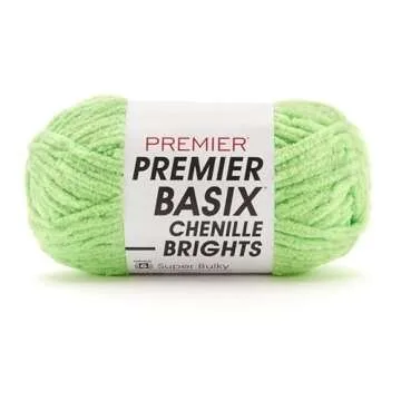 Premier Yarns Basix Chenille Brights Yarn 5.3 Oz Each Skein 6 Super Bulky Chunky Weight 3 Pack Bundle with Bella's Crafts Stitch Markers (Kiwi)