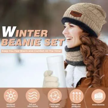 Premillow Winter Hat Beanie Scarf Touchscreen Gloves Set for Men/Women, Skull Cap Gloves Neck Warmer Set with Fleece Lined