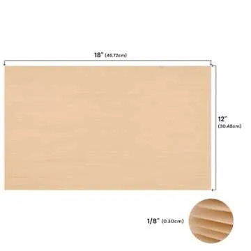Premium Baltic Birch Plywood,3 mm 1/8"x 12"x 18" Thin Wood 6 Flat Sheets with B/BB Grade Veneer for DIY Arts and Crafts,Woodworking,Scroll Sawing Projects,Painting,Drawing,Laser Cutting Projects