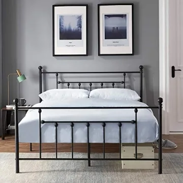 Show moreTransform your bedroom with the Premium Full Size Bed Frame by VECELO, a metal platform mattress foundation that is not only aesthetically pleasing but also highly functional. This bed frame boasts a beautiful vintage design with a matte black metal finish and antique-style castings, making it the perfect centerpiece for any bedroom decor. Combining quality craftsmanship and stylish elements, this bed frame elevates your sleeping experience while enhancing the overall ambiance of the room.