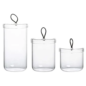 Show moreIntroducing our Premium Glass Apothecary Jars for Cotton with Handle, the ultimate solution for stylish and organized bathroom storage. This exquisite set of three jars is designed with both elegance and functionality in mind, featuring a stunning handmade glass design adorned with chic leather handles. Whether you need to store cotton swabs, cotton balls, or cosmetic pads, these jars are your go-to choice for maintaining a sophisticated and tidy bathroom environment. The clear glass construction allows easy visibility of contents while adding a touch of modern decor to any space. Each jar expertly balances beauty and utility, making them not just storage solutions but also elegant decor pieces for your bathroom counter.