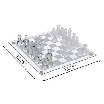 Premium Glass Chess Set, 14 Inch - Elegant Design - Durable Build - 32 Frosted and Clear Pieces - Felted Bottoms - Easy to Carry - Stable & Fully Functional for Chess Lovers