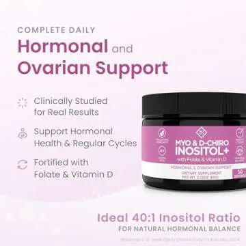 Premium Inositol Supplement - Myo-Inositol and D-Chiro Inositol Powder Plus Folate and Vitamin D - Ideal 40:1 Ratio - Hormone Balance & Healthy Ovarian Support for Women - Vitamin B8-30 Day Supply