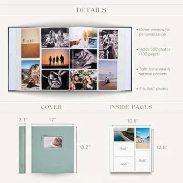 The album can hold up to 500 4x6 photographs due to its 50 sheets of pockets.