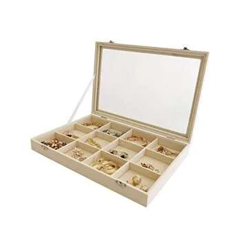 Premium Quality Large Beige Velvet Jewelry Display Box Tray with See Through Lid Multi Function Stackable Practical Storage