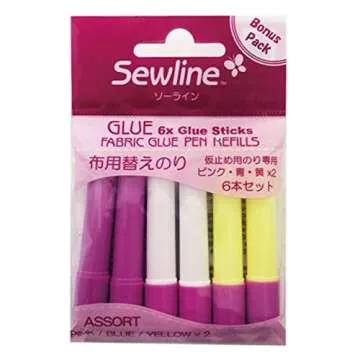 Premium Quality Sewline Multi Assorted Refill for Glue Pen Pink Blue Yellow Fabrics Quilting Notion 6 Pack