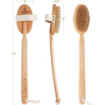 The Zen Me Dry Brush goes above and beyond as a body exfoliator, enhancing lymphatic drainage and circulation. A quick dry massage can provide relief from swollen legs, feet, and ankles, flushing out impurities through stimulating lymph flow. Regular use ensures that you can effectively *eliminate dry skin*, generating renewed skin with just a few upward strokes, making this product a favorite for those battling skin impurities and rough patches.