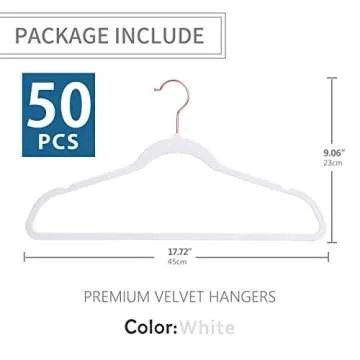 Premium Velvet Hangers Rosegold Nonslip,Heavy Duty,Clothes Hangers,Huggable Suit Hangers,Space Saving Felt Adult Hangers Slimline Hanger Closet Organizer Standard Copper (50, White)