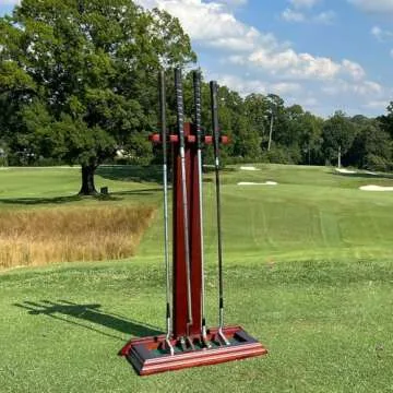 Premium Wooden~Golf Putter Stand~Solid Wood with Cherry Finish~Holds 4 Putters~Great for Home or Office