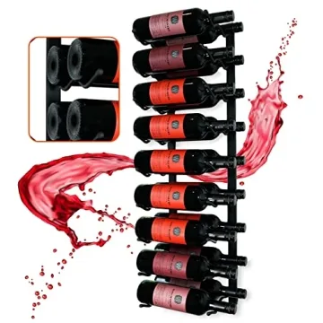 Premium Wrought Iron Frame Wine Rack: Elegant Storage Solution for Wine & Spirits, Holds 18 Bottles, Durable Iron with Rubber Tips, Comes with 8 Screws & Anchors, Easy Assembly, Stylish Design (Black)
