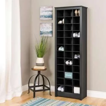 Prepac Elegant Black Shoe Storage Cabinet, Space-Saving Solution with Cubbies for 36 Pairs, 13"D x 23.5" W x 72.5" H