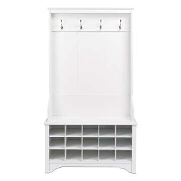 Prepac Entryway Organizer with 4 Coat Hooks and 15 Cubbies for Shoe Storage in White