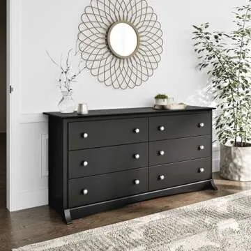 Constructed from non-toxic laminated composite woods, this durable dresser is built to withstand daily use while maintaining its sleek appearance. The brushed nickel drawer knobs add a touch of sophistication, contrasting beautifully with the rich finish of the dresser. Each of the six spacious drawers is designed for smooth operation, making access to your items both easy and convenient.