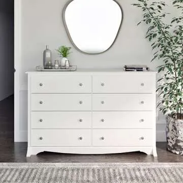 Prepac Sonoma 8 Drawer Double Dresser for Bedroom, Wide Chest of Drawers, Bedroom Furniture, Clothes Storage and Organizer, 17.25" D x 59" W x 37" H, White