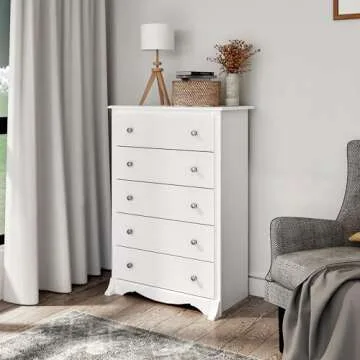 Prepac Sonoma Superior 5-Drawer Chest for Bedroom - Spacious and Stylish Chest of Drawers, Measuring 17.75"D x 31.5"W x 44.75"H, In White Finish