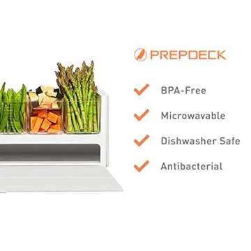 Prepdeck Recipe Preparation Kit and Storage, 8 Premium Prepping Tools, Cutting Board with 15 Tritan Plastic Food Containers with Lids, Removable Trash Bin, Microwave and Top-Rack Dishwasher Safe