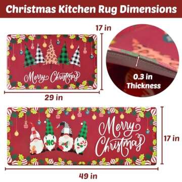 PRESENCE Christmas Kitchen Rugs Mats - 2Pcs Xmas Gnome Christmas Kitchen Rugs and Mats Non Skid Washable Set of 2 Red Christmas Decorations Indoor(17"x29"&17"x47")