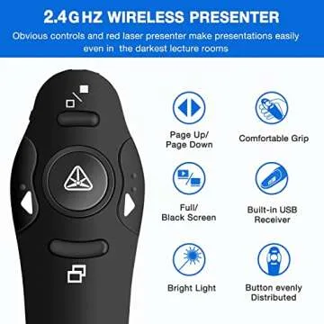 Presentation Clicker Wireless Presenter Remote USB Control Powerpoint PPT Clicker, Laser Pointer RF 2.4GHz Presenter Remote Google Slide Advancer Powerpoint Clicker for Computer/Laptop/Mac/Keynote