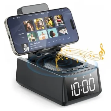 Show moreDiscover the ultimate blend of functionality and style with this multifunctional speaker that combines the best features of a Bluetooth speaker, alarm clock, and phone stand into one sleek device. Designed for versatility, this 3-in-1 wireless Bluetooth speaker offers a unique foldable design, allowing you to easily adjust the angle for your phone while enjoying premium sound quality. Crafted by a renowned brand, this portable speaker comes equipped with a time display and a loud alarm clock feature, making it perfect for any space, whether it's your kitchen, workspace, or bedroom. With a remarkable 12-hour time display, it ensures you stay punctual while enjoying your favorite music, podcasts, or videos with crystal clear sound.