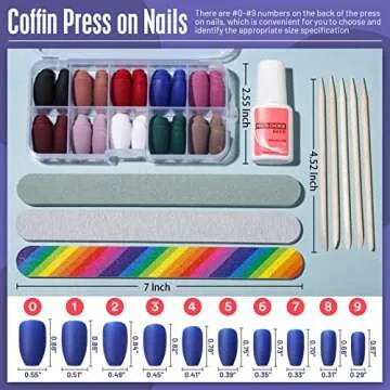 Press On Nails Medium Length, HNYYZL Coffin Matte Fake Nails Full Cover, 10 Solid Colors Short Ballerina Press On Nails, 10 Packs Acyclic False Nails Tips Set with Nail Glue, Nail File for Nail Art