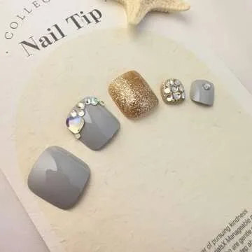 Press on Toenails Rhinestones Fake Toe Nails Bling False Toenails Glossy Full Cover Acrylic Toenails with Design Glod Glitter Toe Press on Nails Toe Nail Press ons for Women Manicure 24Pcs
