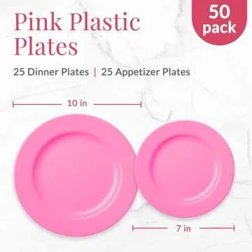 Prestee 50-pc Elegant Pink Plastic Plates - Dinner & Salad Set for All Events