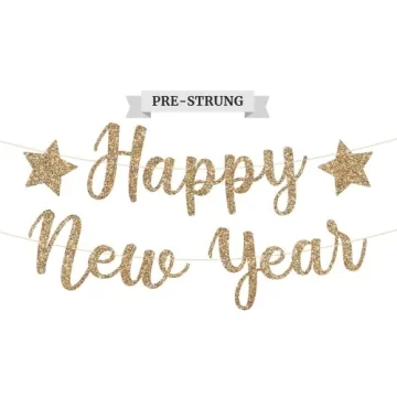 PreStrung Happy New Year Banner NO DIY Gold Glitter New Years Eve Party Banner in Script PreStrung Garland on 6 ft Strands Gold 2023 New Years Eve Party Supplies & Decorations & Decor. Did